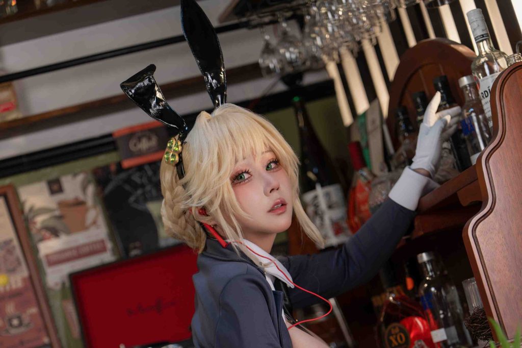KANEKO_咔喵的《爱德特工兔女郎》cosplay预览以简约而不失精致的兔女郎造型为主。外衣与内衣层层叠搭,展现出丰富的层次感;配合细腻的手绘图案和立体裁剪技术,更显精致非凡。搭配小巧可爱的兔子耳朵和尾巴,使整体形象更加生动活泼。配饰方面选择了简洁而实用的设计,如精致的手表、项链等,使整体形象更为协调统一。表情控制上注重自然而不僵硬,配合多变的姿势节奏,营造出轻松愉悦的氛围感。照片构图讲究平衡与和谐,视觉节奏流畅自如;预览亮点在于细节处理到位,层次分明,充分展示了角色的魅力所在。尤其是在背景灯光和色彩搭配下,更显角色的独特魅力,令人眼前一亮,仿佛能感受到爱德特工兔女郎在执行任务时的飒爽英姿和俏皮灵动。
