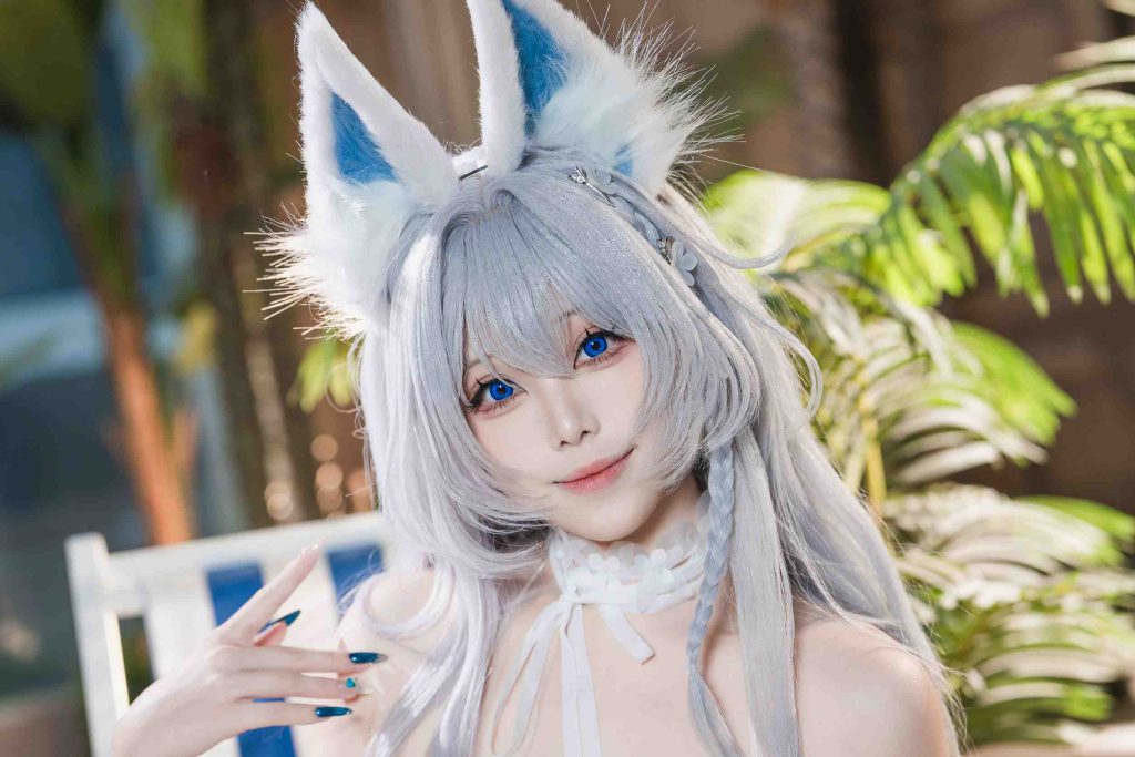 蜜汁猫裘的水色夏日信浓cosplay作品以清新脱俗的风格呈现。她采用了轻盈飘逸的夏季服装,并搭配淡雅的蓝色系服饰,营造出一种清凉宜人的氛围。层次分明的衣物叠加既展现了细腻的设计感又不失整体和谐统一,仿佛在微风中轻轻摇曳。配饰方面,一顶精致的小帽和几条简约的手链恰到好处地点缀着造型增添了几分俏皮与灵动;而她那轻盈的步伐与自然的身姿更是为整个作品增色不少。在表情控制上无论是微笑还是凝视都显得十分传神姿态节奏流畅自如每一个动作都充满韵律感。拍摄氛围轻快愉悦画面构图讲究视觉节奏把握得当让每一张照片都能呈现出独特的魅力。蜜汁猫裘在这部作品中不仅展现了高超的造型技巧和出色的表现力,还通过精准的表情控制与姿态设计为观众带来了一场视觉盛宴。 背景布景选用淡雅色调光影柔和使得整个场景更加生动自然;拍摄角度巧妙运用从正面、侧面到背面多方位捕捉角色神态使画面层次丰富立体感十足。此外细节处理上也十分用心如衣摆随风轻拂的动态效果以及背景中隐约可见的小桥流水等元素都为作品增色不少。蜜汁猫裘在每一个镜头前都能完美地呈现出水色夏日信浓的魅力不仅在于服装与配饰的精致更在于她对角色情感细腻入微的理解和表达。
